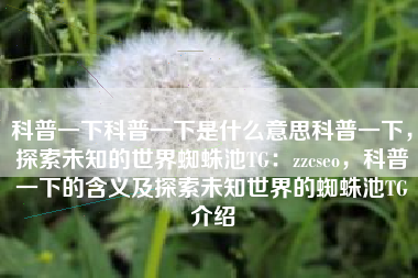 科普一下科普一下是什么意思科普一下,探索未知的世界蜘蛛池TG:zzcseo,科普一下的含义及探索未知世界的蜘蛛池TG介绍