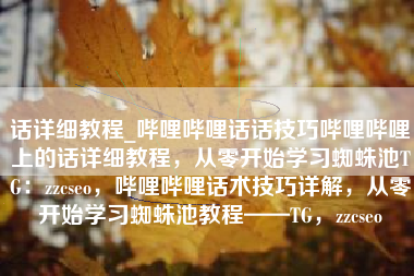 话详细教程_哔哩哔哩话话技巧哔哩哔哩上的话详细教程蜘蛛池TG:zzcseo,哔哩哔哩话术技巧详解,蜘蛛池TG教程