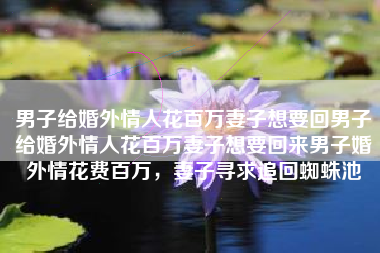 男子给婚外情人花百万妻子想要回男子给婚外情人花百万妻子想要回来男子婚外情花费百万,妻子寻求追回蜘蛛池