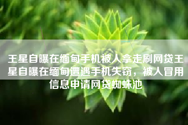 王星自曝在缅甸手机被人拿走刷网贷王星自曝在缅甸遭遇手机失窃,被人冒用信息申请网贷蜘蛛池
