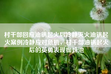 村干部回应油锅起火后冷静灭火油锅起火案例冷静应对危机,村干部油锅起火后的英勇表现蜘蛛池