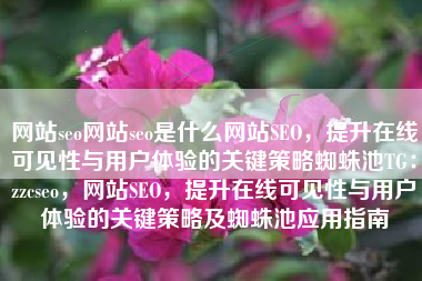 网站seo网站seo是什么网站SEO,提升在线可见性与用户体验的关键策略蜘蛛池TG:zzcseo,网站SEO,提升在线可见性与用户体验的关键策略及蜘蛛池应用指南