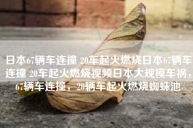 日本67辆车连撞 20车起火燃烧日本67辆车连撞 20车起火燃烧视频日本大规模车祸,67辆车连撞,20辆车起火燃烧蜘蛛池