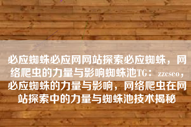 必应蜘蛛必应网网站探索必应蜘蛛,网络爬虫的力量与影响蜘蛛池TG:zzcseo,必应蜘蛛的力量与影响,网络爬虫在网站探索中的力量与蜘蛛池技术揭秘
