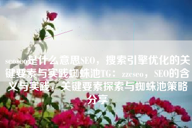 seoseo是什么意思SEO,搜索引擎优化的关键要素与实践蜘蛛池TG:zzcseo,SEO的含义与实践,掌握搜索引擎优化核心要素,揭秘蜘蛛池的秘密