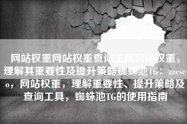 网站权重网站权重查询工具网站权重,理解其重要性及提升策略蜘蛛池TG:zzcseo,网站权重,理解重要性、提升策略及查询工具,蜘蛛池TG的使用指南