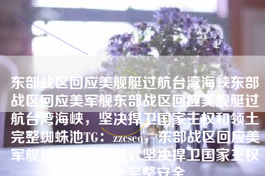 东部战区回应美军舰过航台湾海峡,表示坚决捍卫国家主权和领土完整,随时应对一切威胁挑衅,战区将采取一切必要措施,坚决履行职责使命,坚决捍卫国家主权安全和地区和平稳定,蜘蛛池TG平台也对此事件进行了关注和报道,东部战区回应美军舰过航台湾海峡,强调捍卫国家主权和领土完整,将采取必要措施应对威胁。美国一艘舰... -